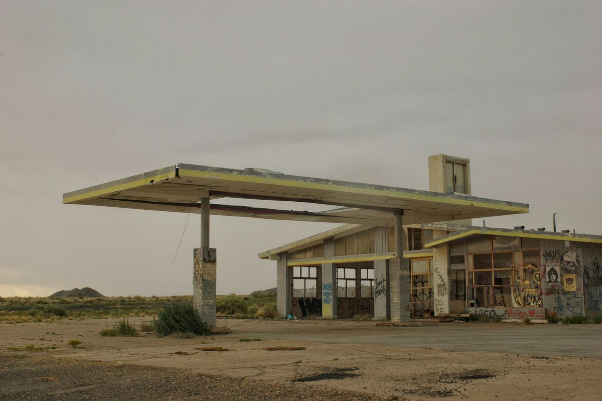 Terk edilmiş bir benzinliğe vardım. Haritada görünmeyen, yolu gösteren tabelaların bile yıllar önce söküldüğü bir yerde. Yolun kıyısında solmuş boyalar, paslı pompalar, …